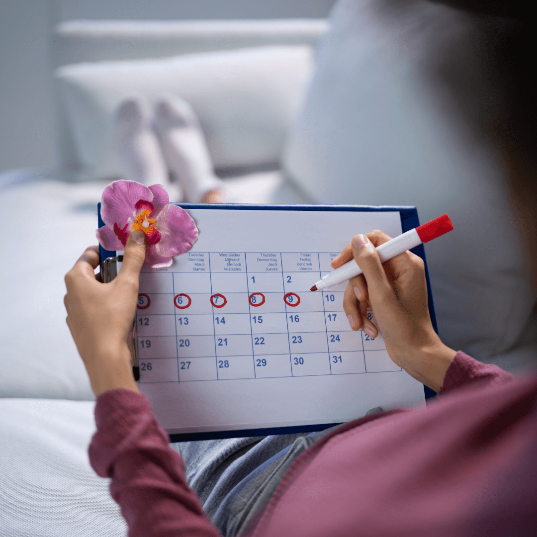 Weekly tracker of the menstrual, follicular, ovulation, and luteal phases.